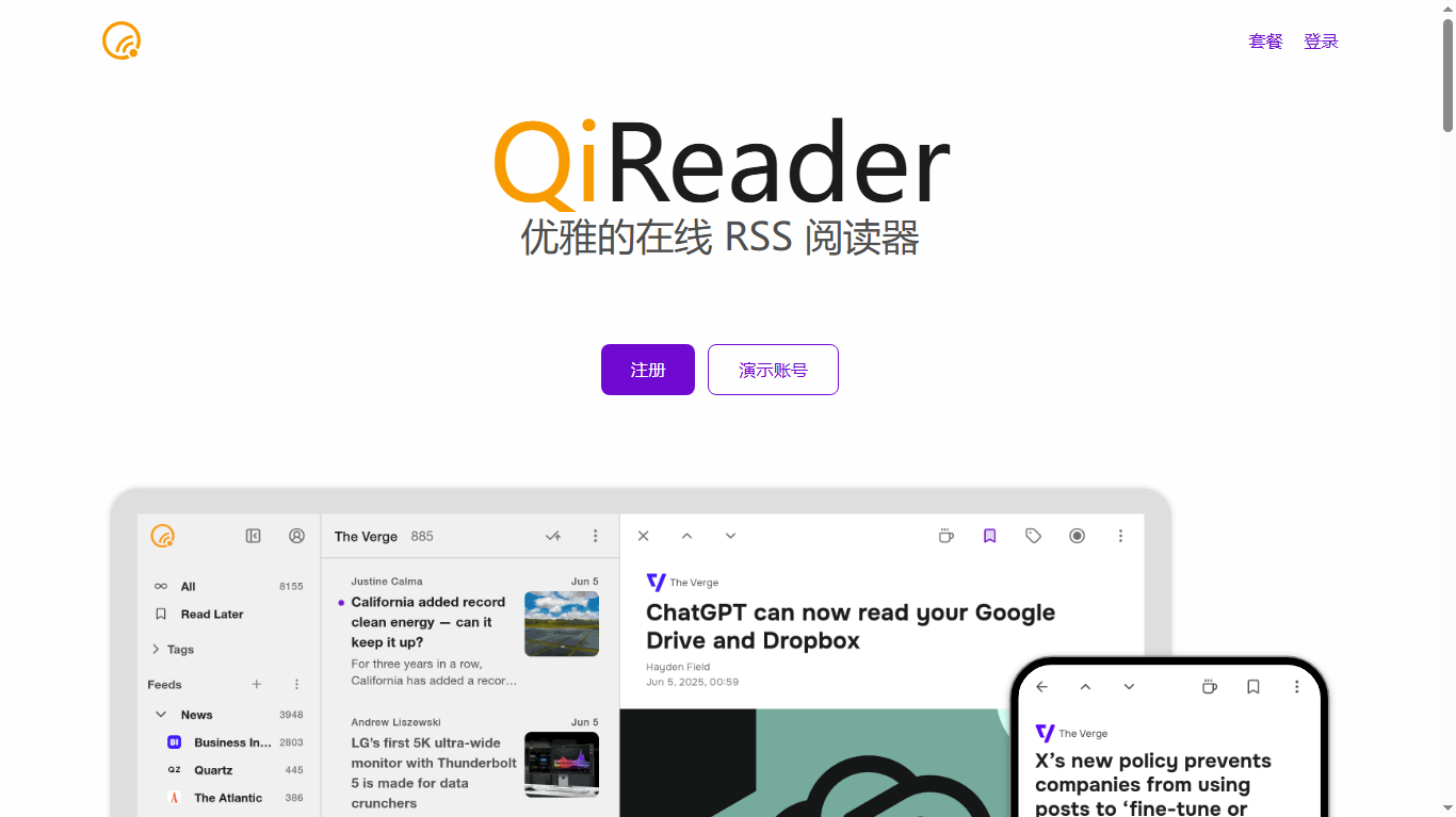 以下是QiReader官网首页的部分截图。