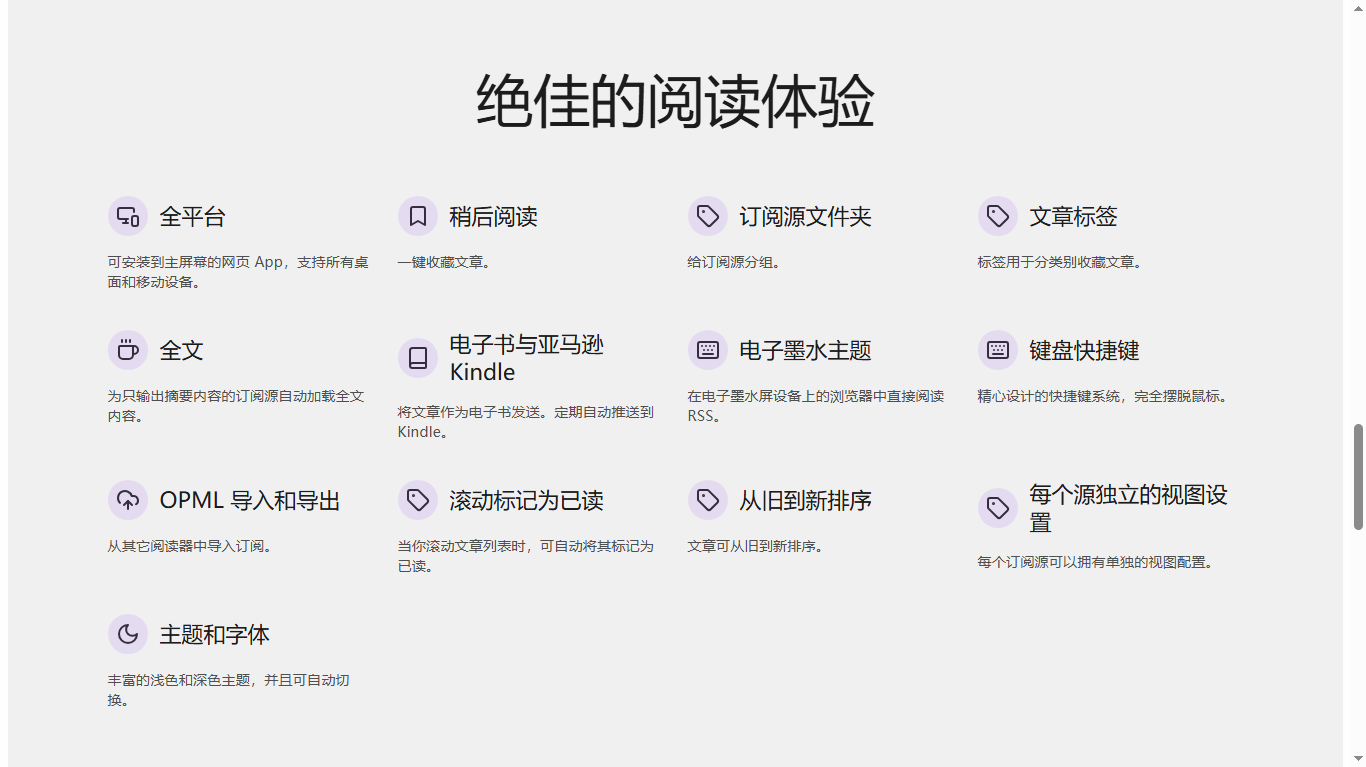 其最突出的特点是它完全可以在线使用,无需安装本地App,绝对是在线党的福音;同时QiReader还支持在你的手机、电脑、平板等不同设备上同步订阅文章,真的非常方便;而且它还内置了上千种国内外著名的RSS订阅源,可以通过选择标签来迅速找到世界上高质量的订阅源。
